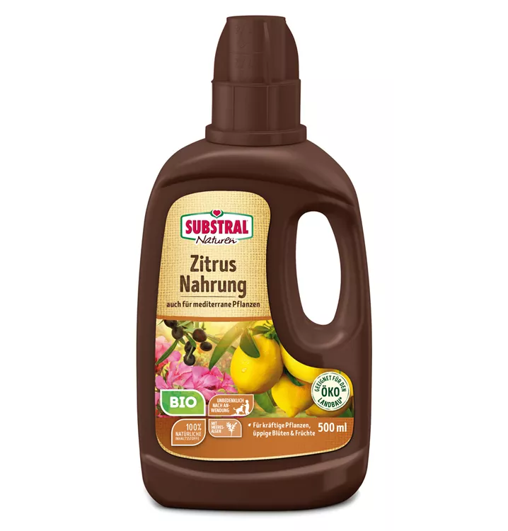 Substral Naturen Zitrus Nahrung Bio ist ein natürlicher Flüssigdünger mit Braunalgen, der lhre Pflanzen mit wichtigen Nährstoffen versorgt. Für kräftige Pflanzen, üppige Blüten und Früchte.