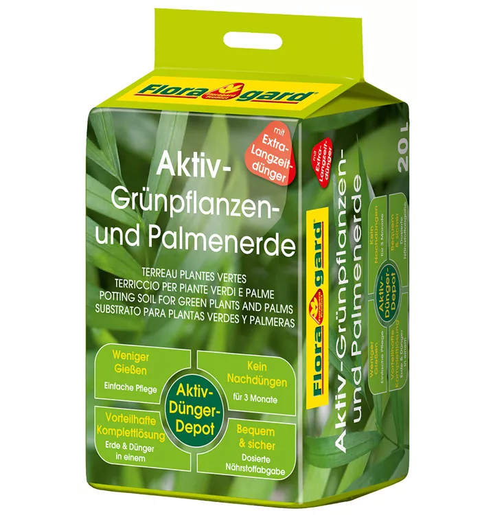 Die Floragard Aktiv Grünpflanzen- und Palmenerde ist eine gebrauchsfertige Spezial-Erde zum Topfen und Umtopfen von Palmen und anderen langlebigen Grünpflanzen.