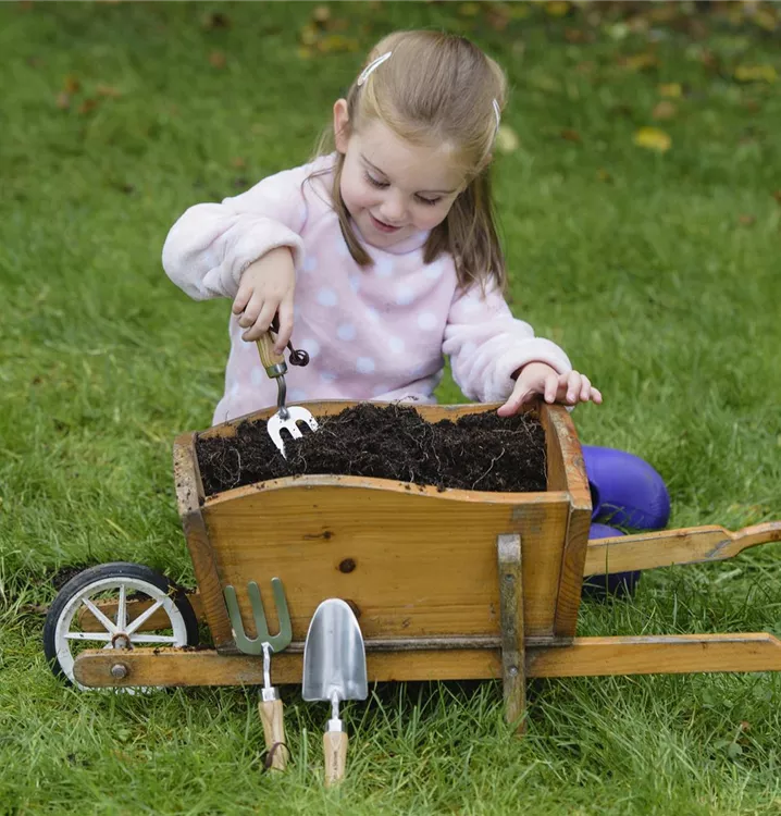 Proportional kleiner und leichter als die Gartengeräte für Erwachsene. Handfertigung stellt die Eignung des Werkzeugs für Kinder sicher. Zum Jäten, Pflanzen und für die Gartenpflege.