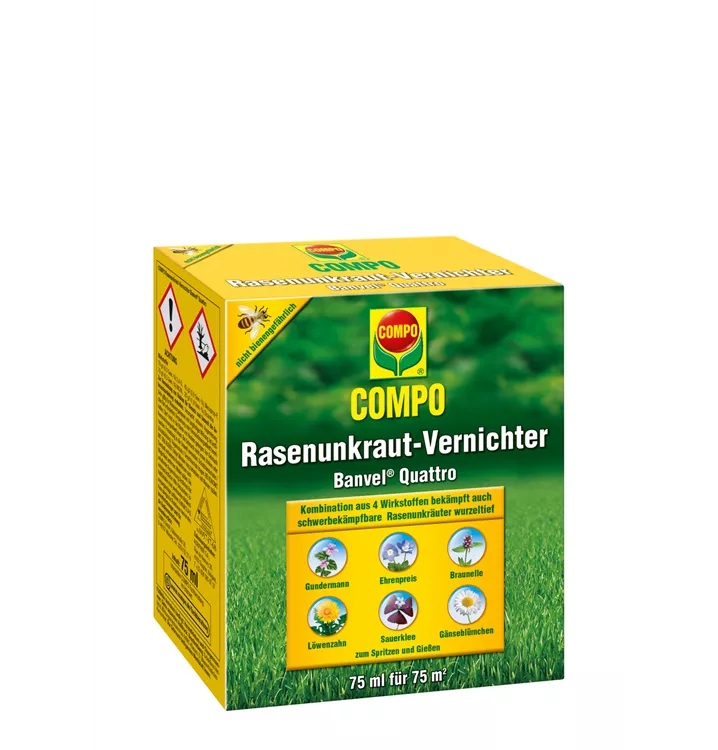 Schwer bekämpfbare Unkräuter im Rasen werden durch die Kombination aus 4 Wirkstoffen vernichtet bis in die Wurzel vernichtet. Das nicht bienengefährliche Produkt wirkt zuverlässig über Blatt und Wurzel. Es vernichtet u.a Gundermann, Ehrenpreis, Braunelle, Löwenzahn und Kleearten. Es ist zum Gießen und Spritzen geeignet. Das anwendungsfertige Produkt ist ideal für kleine Flächen.