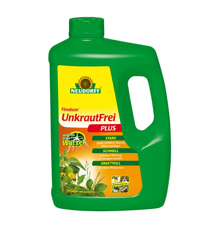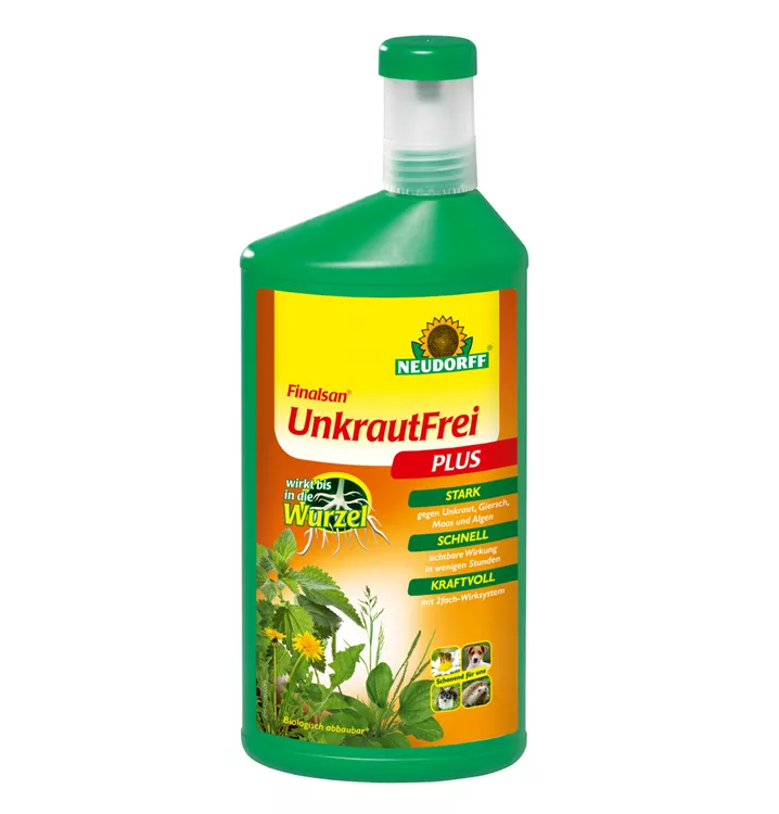 16,6 %ig, d. h. 100 ml Finalsan mit 500 ml Wasser mischen für 6 qm Unkrautfläche. 1 l Finalsan Konzentrat UnkrautFrei Plus reicht für bis zu 180 qm (Einzelpflanzenbehandlung).