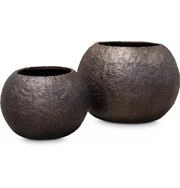 Hergestellt aus Kunststoff mit echten Bronzepigmenten punkten die ROCKY Pflanzgefäße mit ihrer ganz besondere Optik und einem geringen Gewicht. Durch Oxidationsprozesse bildet sich mit der Zeit eine echte und natürlich anmutende Patina auf der Gefäßoberfläche − selbstverständlich ohne zu rosten. Für eine Bepflanzung im Außenbereich kann problemlos ein Loch in den Gefäßboden gebohrt werden.