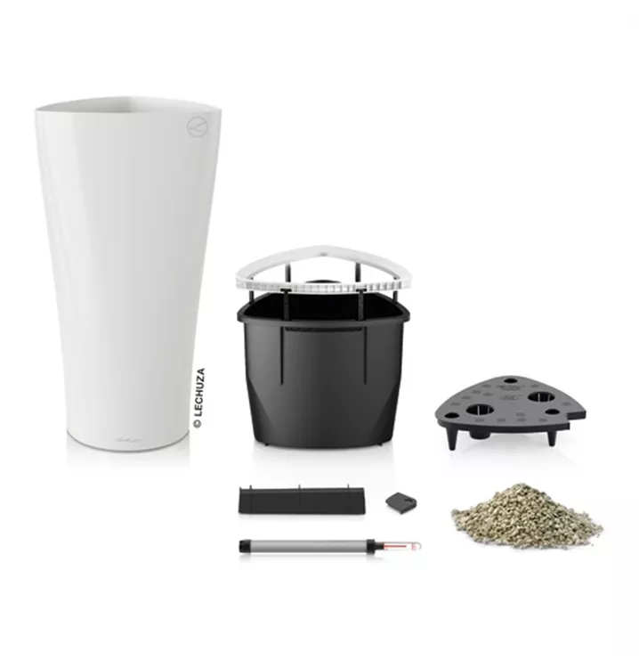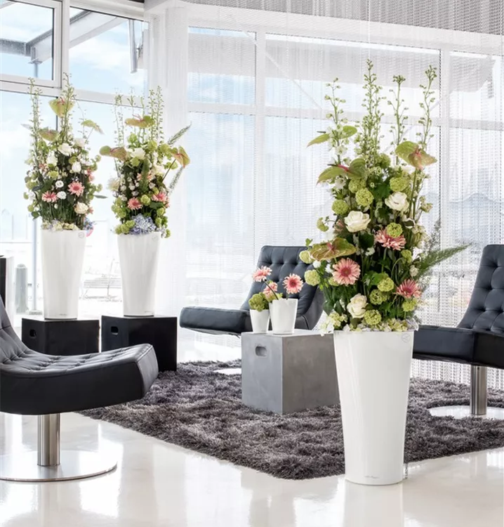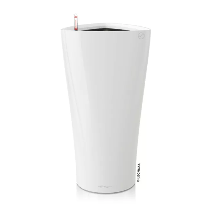 Das schmale Pflanzgefäß DELTA setzt mit der außergewöhnlichen Form hohe Grünpflanzen oder zarte Orchideen elegant und eindrucksvoll in Szene. Die runde Säulenform schließt oben in einem elegant geschwungenen Dreieck ab und setzt so aufmerksamkeitsstarke Akzente. Ob im Wohnzimmer, im Büro oder in öffentlichen Räumen – DELTA 30 und 40 bieten in drei Farbtönen einen außergewöhnlichen Rahmen für Bepflanzungen jeglicher Art. Der Pflanzeinsatz mit dem Griffrahmen in der Gefäßfarbe ermöglicht ein einfaches Wechseln der Bepflanzung und das integrierte Original LECHUZA-Bewässerungssystem versorgt die Pflanzen optimal.