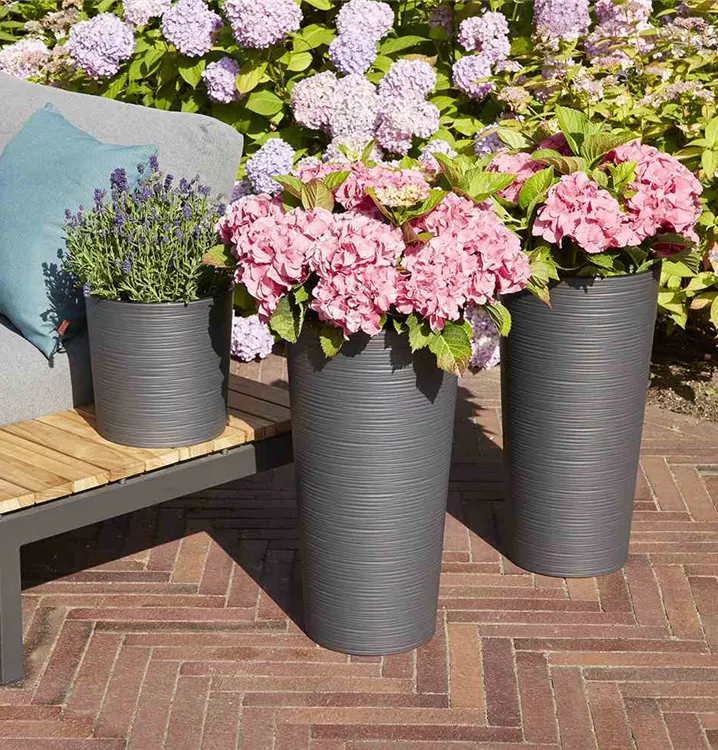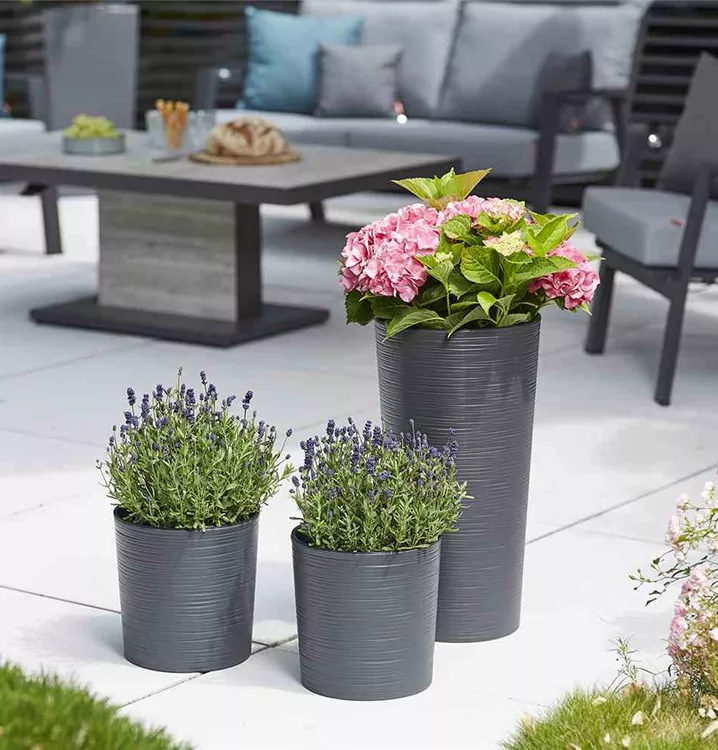 Siena Garden Pflanzkübel Locon, rund, Ø 30x57,0 cm Rillenoptik in graphit Kunststoff