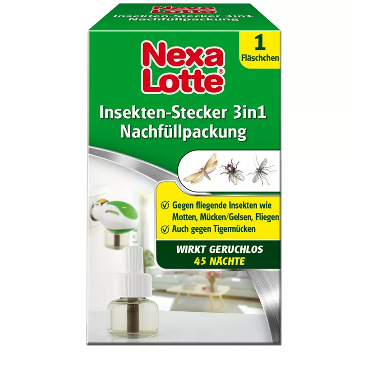 Nexa Lotte Insektenschutz 3 in 1 wirkt gezielt und zuverlässig-geruchslos-gegen fliegende Insekten in allen Räumen wie zum Beispiel Schlafzimmer, Wohnzimmer, Küche und Campingwägen etc.