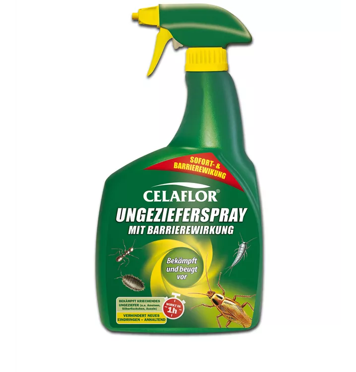 Substral Celaflor Ungezieferspray mit Barrierewirkung ist ein schnell und zuverlässig wirkendes Pumpspray zur gezielten Bekämpfung von Ameisen und anderem kriechenden Ungeziefer wie Schaben, Silberfischchen, Feuerwanzen, Asseln u. a. im und am Haus.
