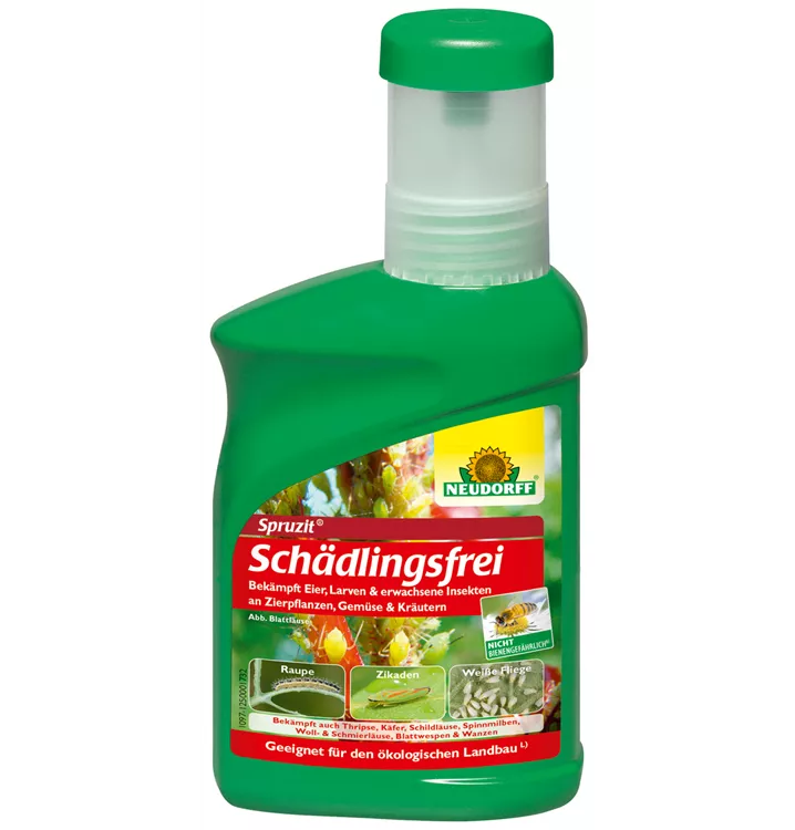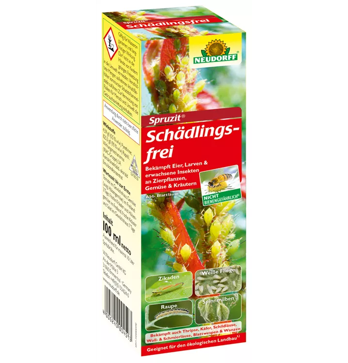 Spritzmittel mit breitem Wirkungsspektrum gegen saugende Insekten an Zierpflanzen in Zimmern, Balkonen, unter Glas und im Freiland sowie an Gemüse und Obst im Freiland. Sicher bekämpft werden: Blattläuse, Spinnmilben, Weiße Fliegen, Thripsen, Schild-, Woll- und Schmierläuse, Sitkafichtenläuse und Zikaden. NB6641: nicht bienengefährlich (B4)