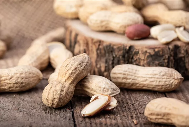 Und nun heißt es nur noch warten. Beginnt die Pflanze etwa im September zu verwelken, ist Erntezeit. Ziehen Sie nun einfach die komplette Pflanze aus dem weichen Boden. Ziehen Sie die Früchte ab und lassen Sie sie trocknen.