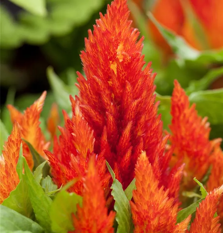 Die Celosie (Celosia argentea var. plumosa) ist eine beliebte Pflanze für den Balkon, die während der gesamten Saison unzählige Blüten bildet. Ein sonniger Standort und ein durchlässiges Substrat werden bevorzugt.