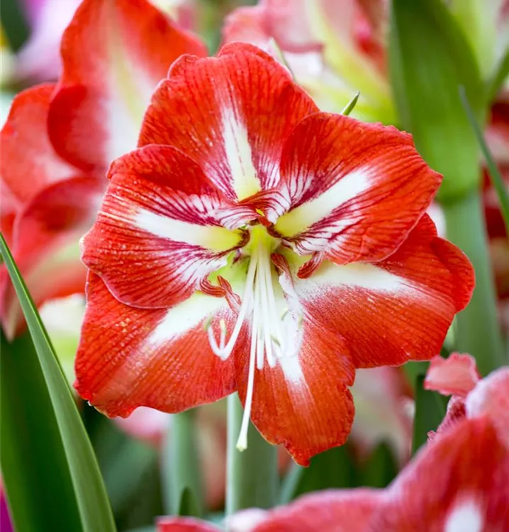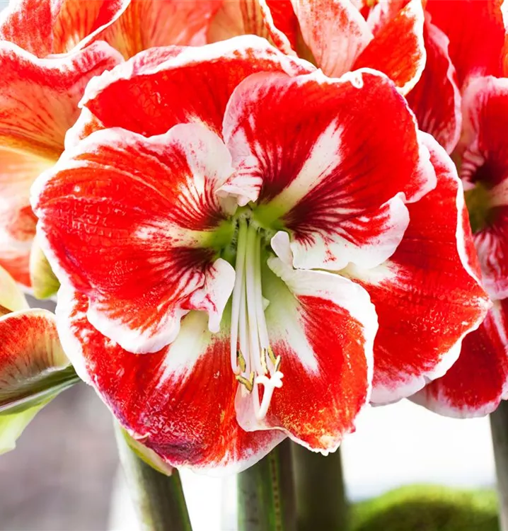 Hippeastrum, rot-weiß findet Verwendung als Zimmerpflanze.