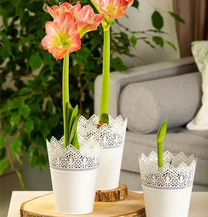 Gelegentliche Trockenheit ist für Hippeastrum, rot-weiß kein Problem, dennoch muss ab und an gegossen werden.