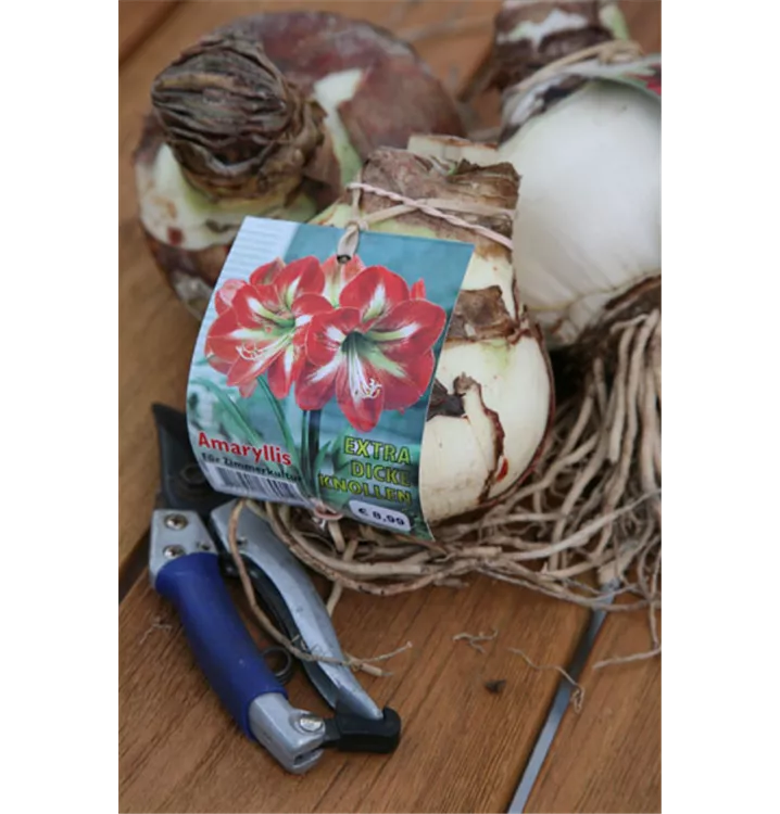 Die beste Pflanzzeit für Hippeastrum, rot-weiß ist September - November.