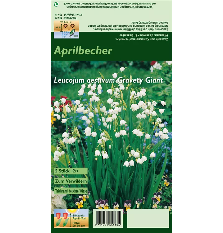 Welch eine Pracht, wenn die Sommer-Knotenblume 'Gravety Giant' ab April ihre herrlichen, weißen, glockenförmigen Blüten hervorbringt! Das Besondere: sie verbreiten einen angenehmen Duft. Wird Leucojum aestivum 'Gravety Giant' an einen sonnigen bis halbschattigen Standort mit durchlässigem und nährstoffreichem Boden gepflanzt, entwickelt sie sich besonders gut. Sie wächst aufrecht und erreicht Größen von 35 cm bis 45 cm bei einer Breite von 15 cm bis 20 cm. Sehr dekorativ macht sich die Sommer-Knotenblume 'Gravety Giant' auch in Kübeln oder Kästen.