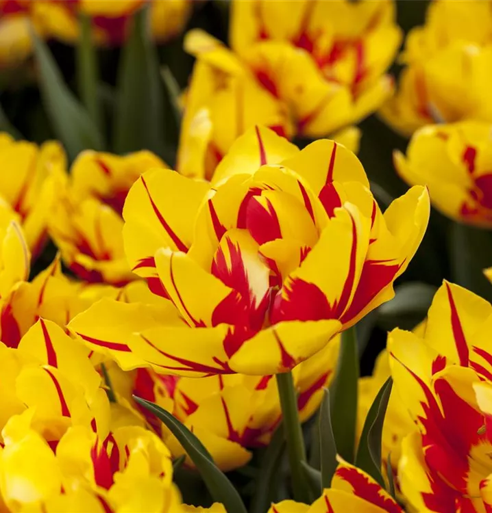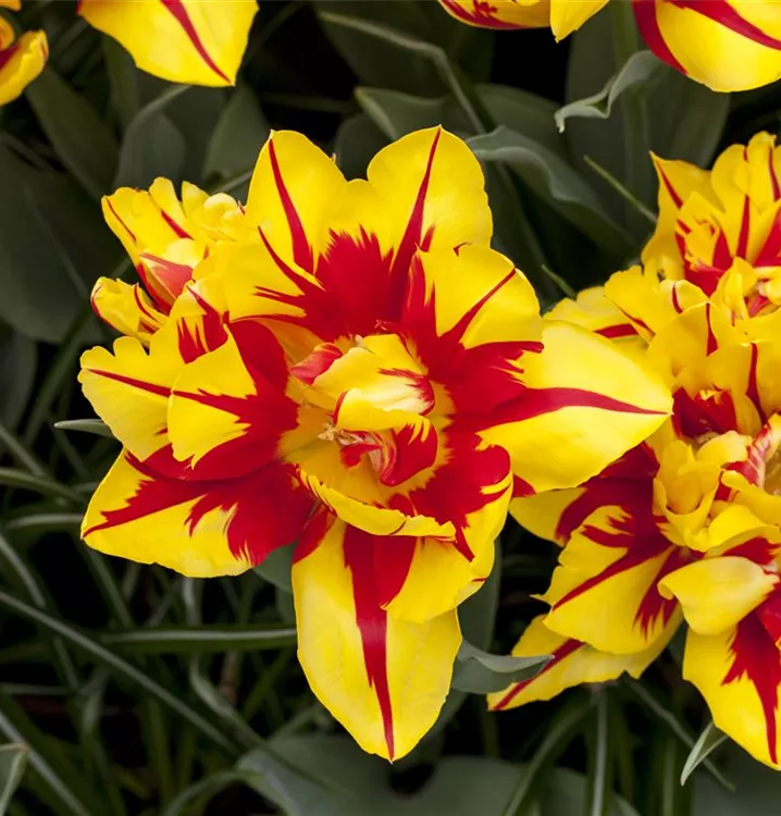 Die Tulpe 'Monsella' inszeniert sich Effektvoll in Ihrem Garten. Die Blütenpracht gefüllten Tulipa 'Monsella'entfacht ein wahres Feuerwerk an gelb-rot geflammten Blüten. Die Blüten verströmen einen angenehmen Duft und erscheinen im April. Bevorzugt wird ein sonniger Standort.