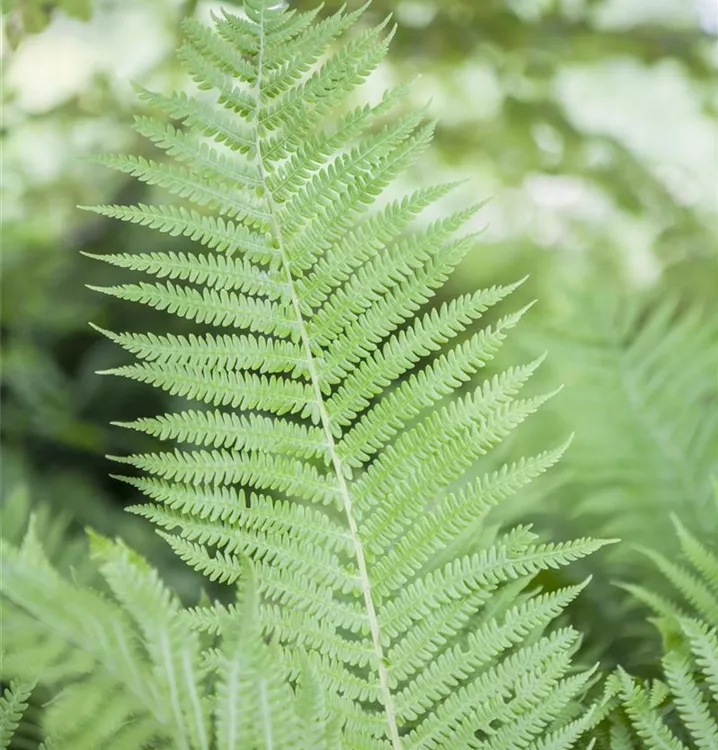 Der Wald-Frauenfarn (Athyrium filix-femina) ist mit seiner hellgrünen Blattfärbung ein dekoratives Gestaltungselement im Garten, welches sich an einem halbschattigen bis schattigen Standort mit einem möglichst durchlässigen, kalkfreien Boden am wohlsten fühlt. Bei günstigen Bedingungen erreicht diesen winterhartn Farn eine Höhe von ca. 80 cm und wird bis zu 70 cm breit.