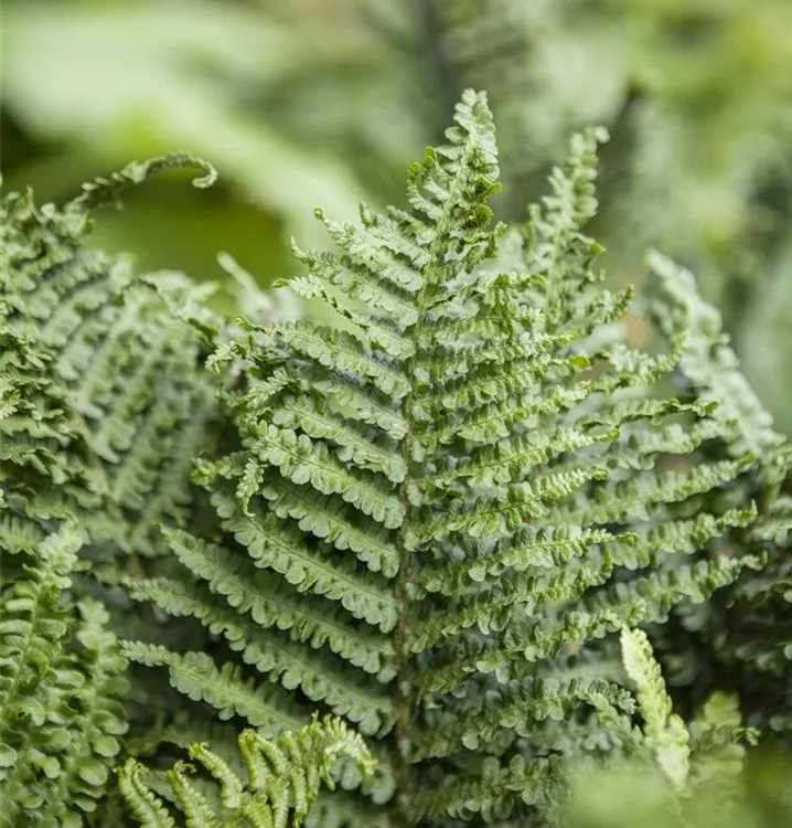 Hoher Blattschmuckwert. Die sommergrünen Blätter des Wald-Frauenfarns sind hellgrün, gefiedert.