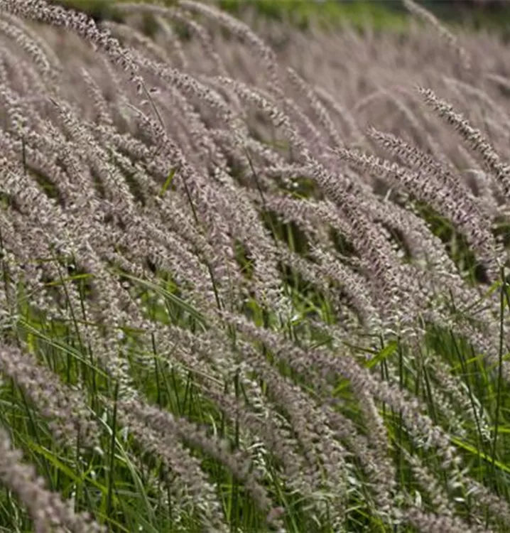 Das Federborstengras 'Tall Tails' (Pennisetum orientale) ist ein dekoratives Gestaltungselement im Garten, welches sich an einem sonnigen Standort mit einem möglichst durchlässigen Boden am wohlsten fühlt. Die violetten Blütenwedel schmücken die aufrecht und dicht wachsende Pflanze ab Sommer. Bei günstigen Bedingungen erreicht dieses winterharte Gras eine Höhe von ca. 1,2 m und wird bis zu 70 cm breit.