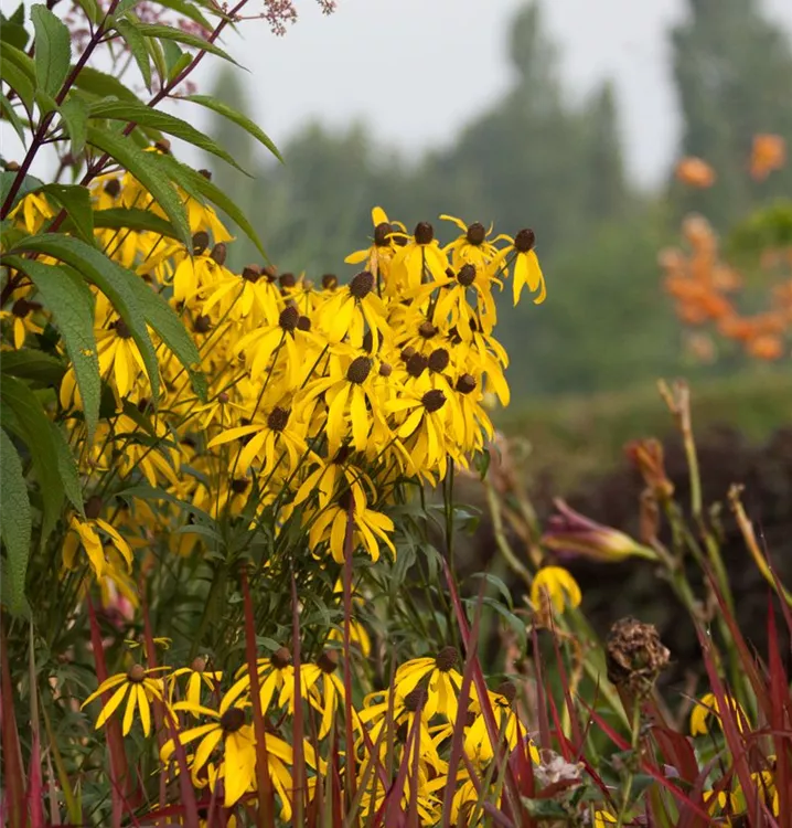Das Garten-Blutgras 'Red Baron' setzt schöne Akzente gemeinsam mit: