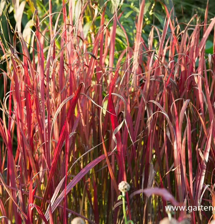 Das Garten-Blutgras 'Red Baron' (Imperata cylindrica) ist mit seiner grün-roten Blattfärbung ein dekoratives Gestaltungselement im Garten, welches sich an einem sonnigen Standort mit einem möglichst durchlässigen, humosen, nährstoffreichen Boden am wohlsten fühlt. Bei günstigen Bedingungen erreicht dieses winterharte Gras eine Höhe von ca. 40 cm und wird bis zu 40 cm breit.