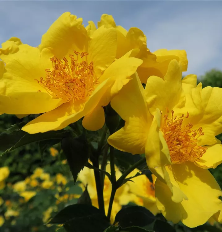 Die Triebe von Rosa 'Lemon Fizz'® sind bestachelt.