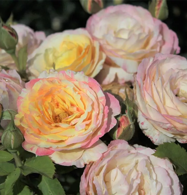 Die Beetrose 'Marc Chagall'® (Rosa) ist eine reichblühende Rose, die im Garten eine besondere Rolle spielt. Die zahlreichen gefüllten Blüten sind mehrfarbig und erscheinen von Juni bis Oktober. Ihr wunderbarer Duft entfaltet sich besonders an sonnigen, warmen Tagen. Mit den richtigen Begleitern an ihrer Seite, kommt die Königin der Blumen besonders gut zur Geltung. Niedrige Stauden, Lavendel und Salbei eignen sich ganz gut für diese Zwecke.