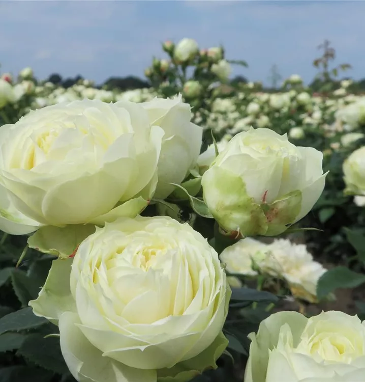 Die Edelrose 'Wedding Piano'® (Rosa) ist eine reichblühende Rose, die im Garten eine besondere Rolle spielt. Die zahlreichen starkgefüllten Blüten sind cremeweiß und erscheinen von Juni bis Oktober. Ihr wunderbarer Duft entfaltet sich besonders an sonnigen, warmen Tagen. Mit den richtigen Begleitern an ihrer Seite, kommt die Königin der Blumen besonders gut zur Geltung. Niedrige Stauden, Lavendel und Salbei eignen sich ganz gut für diese Zwecke.