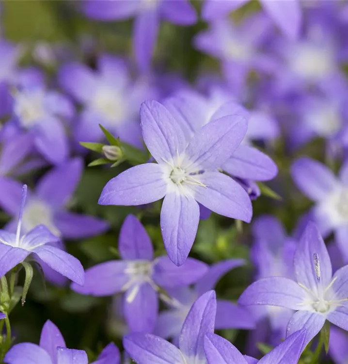 Campanula garganica 'Filigree' bildet sternförmige, blaue Blüten ab Mai. Diese verströmen einen schwachen Duft.