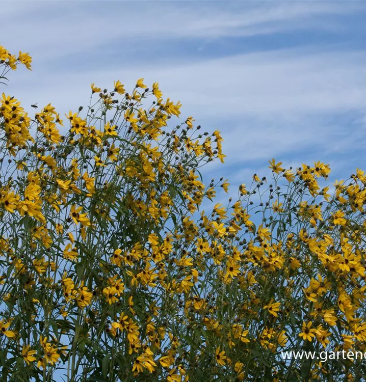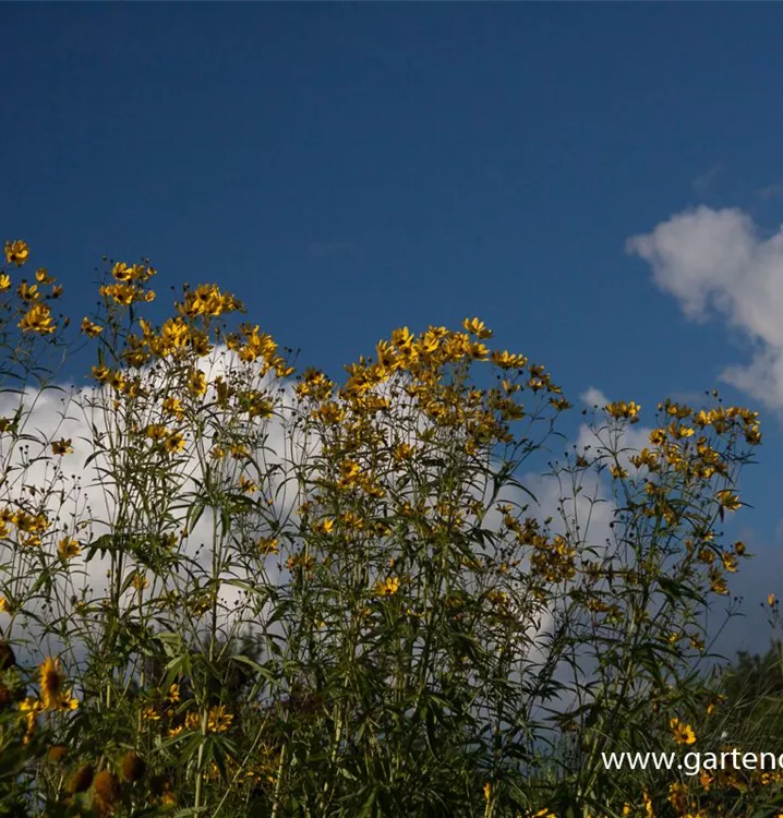 Das Hohe Mädchenauge (Coreopsis tripteris) bildet gelbe, ansehnliche Blüten von August bis September. Die Blüten sind körbchenartig.
