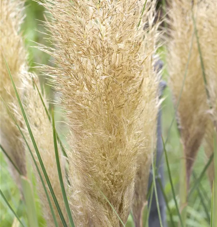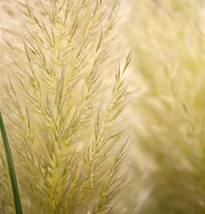 Die wintergrünen Blätter des Pampasgrases sind grau-grün, lineal.