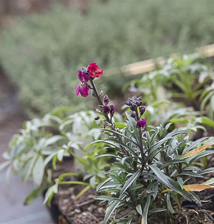 Der Goldlack (Erysimum cheiri) bildet rosafarbene, stark duftende Blüten von Juli bis August. Er bevorzugt durchlässigen Boden in sonniger Lage. Der Goldlack ist an geschützten Standorten gut frostverträglich. Die aufrechte Staude erreicht gewöhnlich eine Höhe von ca. 1 m.