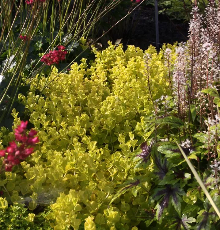 Das Gelblaubige Garten-Pfennigkraut 'Aurea' setzt schöne Akzente gemeinsam mit: