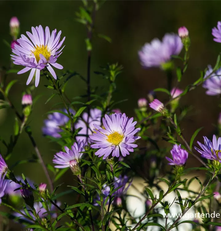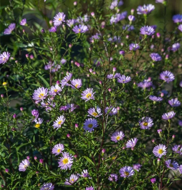 Die Glatte Garten-Aster 'Star of Chester' (Aster laevis) ist eine buschige, aufrechte, horstbildende Staude, die von September bis November lilafarbene, körbchenartige Blüten mit einem angenehmen Duft bildet. An einem sonnigen Standort mit durchlässigem, nährstoffreichem, lehmigem Boden erreicht sie gewöhnlich eine Höhe von ca. 1,6 m und wird ca. 70 cm breit. Die Glatte Garten-Aster 'Star of Chester' ist gut frostverträglich.