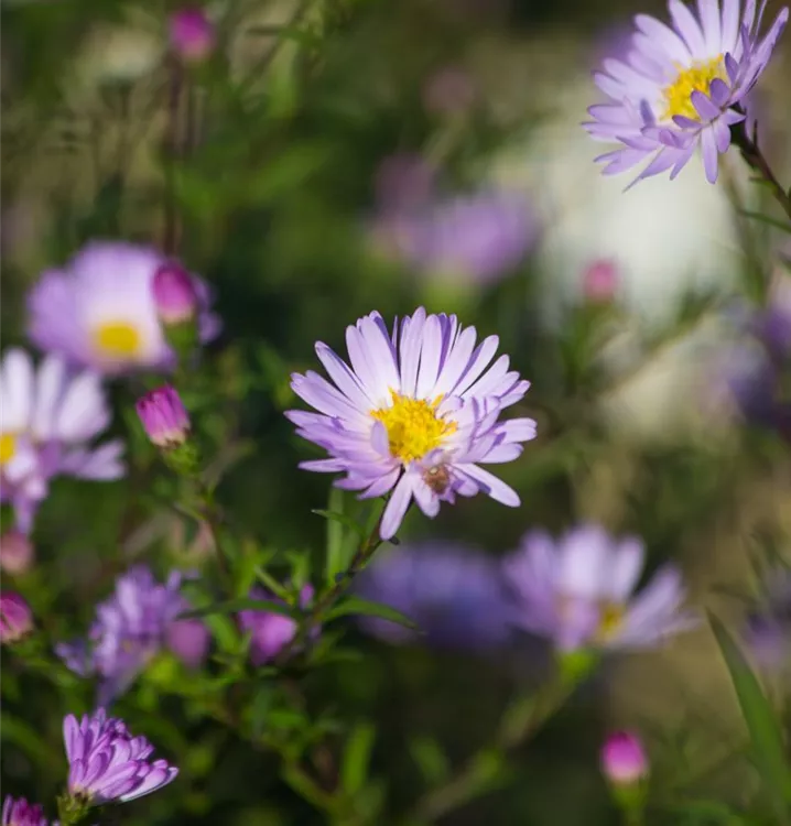 Aster laevis 'Star of Chester' bildet körbchenartige, lilafarbene Blüten ab September. Diese verströmen einen angenehmen Duft.