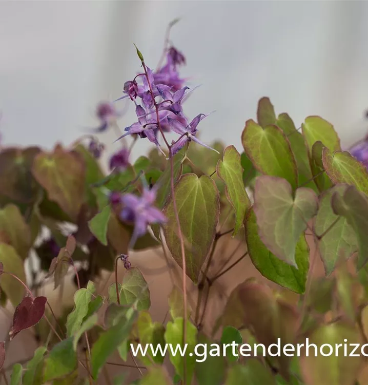 Die Großblütige Garten-Elfenblume 'Lilafee' (Epimedium grandiflorum) ist eine breite, buschige, horstbildende Staude mit dekorativen, herzförmigen, dunkelgrünen Blättern. An einem halbschattigen bis schattigen Standort mit durchlässigem, kalkfreiem Boden erreicht sie gewöhnlich eine Höhe von ca. 30 cm und wird ca. 30 cm breit. Die Großblütige Garten-Elfenblume 'Lilafee' ist gut frostverträglich.