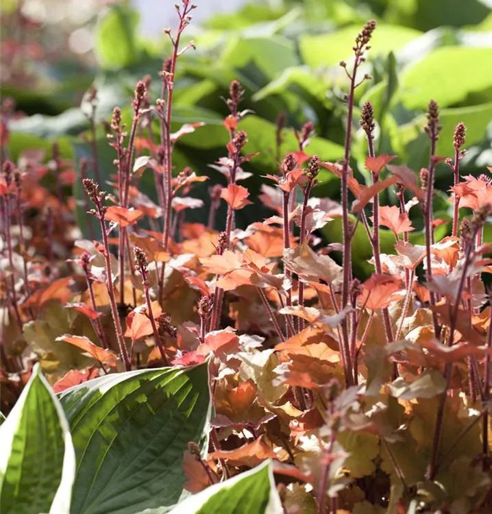Das Purpurglöckchen (Heuchera) ist eine wintergrüne Staude mit dekorativen, kupferbraunen Blättern.