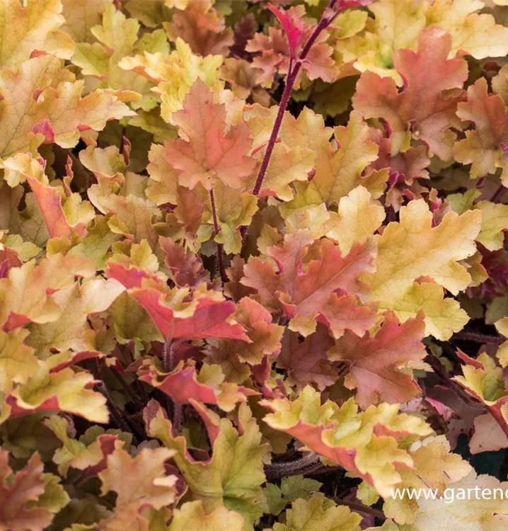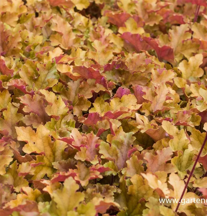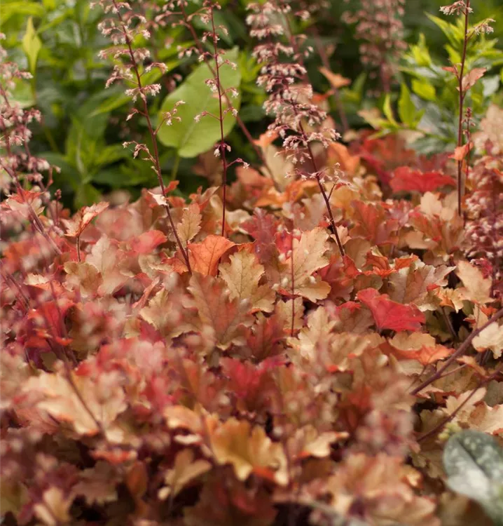 Das Purpurglöckchen (Heuchera) ist eine buschige wintergrüne Staude mit dekorativen, kupferbraunen Blättern. An einem sonnigen bis halbschattigen Standort mit durchlässigem, nährstoffreichem Boden erreicht es gewöhnlich eine Höhe von ca. 50 cm und wird ca. 40 cm breit. Das Purpurglöckchen ist gut frostverträglich.