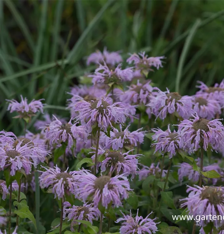 Die Garten-Indianernessel 'Elsie´s Lavender' (Monarda fistulosa) ist eine buschige, aufrechte Staude, die von Juli bis September lilafarbene, lippenförmige, in Quirle angeordnete Blüten bildet. An einem sonnigen Standort mit durchlässigem, nährstoffreichem Boden erreicht sie gewöhnlich eine Höhe von ca. 70 cm und wird ca. 1,2 m breit. Die Garten-Indianernessel 'Elsie´s Lavender' ist gut frostverträglich.