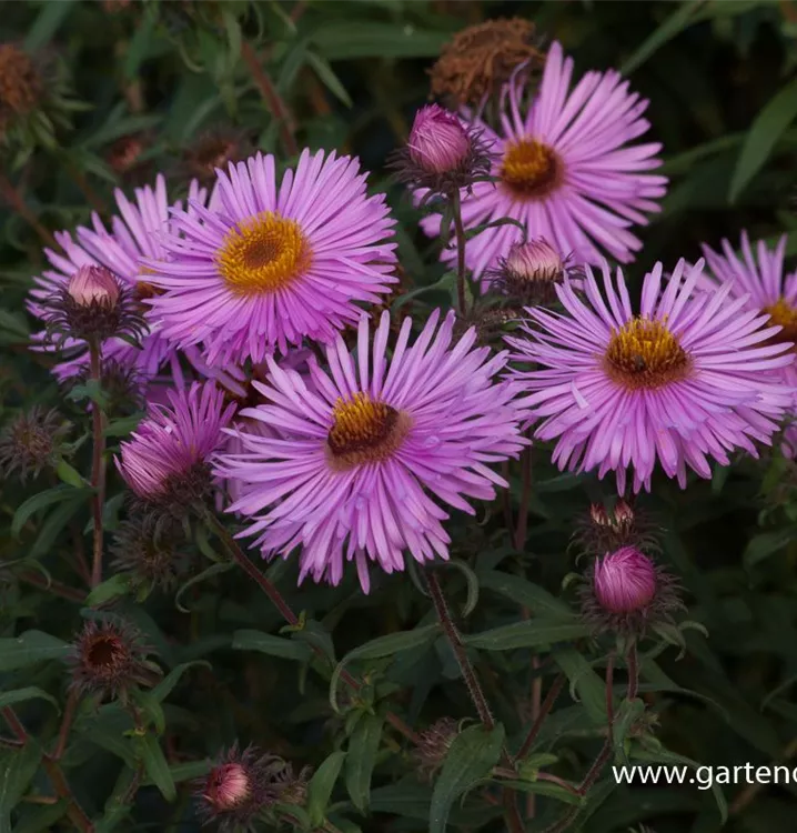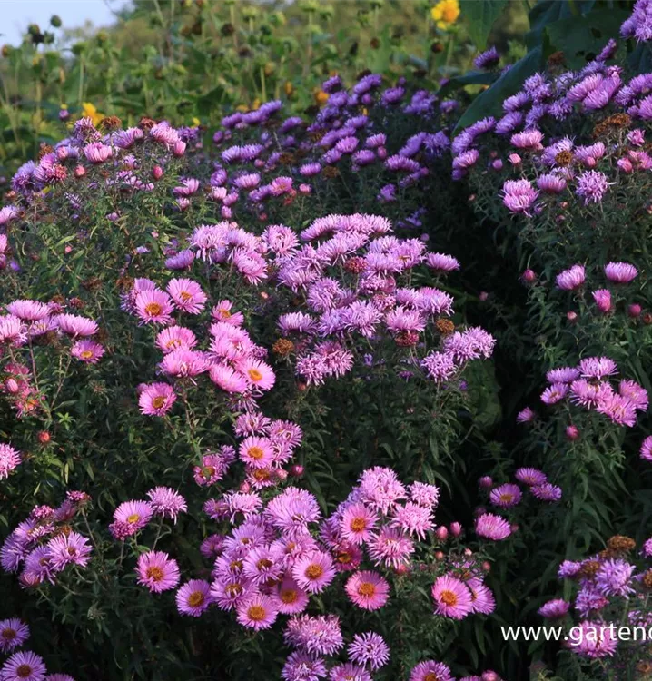 Aster novae-angliae 'Barr´s Pink' bildet körbchenartige, pinke Blüten ab September. Diese verströmen einen angenehmen Duft.