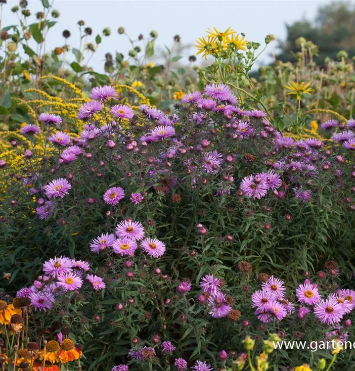 Die Garten-Raublatt-Aster 'Barr´s Pink' setzt schöne Akzente gemeinsam mit: