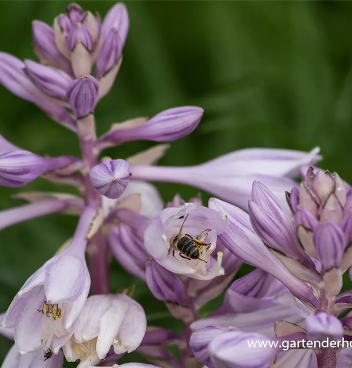 Hosta 'Praying Hands' bildet lilafarbene Blüten ab Juli.