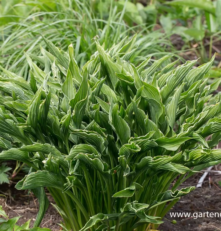 Die Schmalblättrige Funkie 'Praying Hands' (Hosta) ist eine horstbildende, aufrechte Staude mit dekorativen, mittelgrünen Blättern. An einem halbschattigen bis schattigen Standort mit durchlässigem, humosem Boden erreicht sie gewöhnlich eine Höhe von ca. 60 cm und wird ca. 30 cm breit. Die Schmalblättrige Funkie 'Praying Hands' ist gut frostverträglich.
