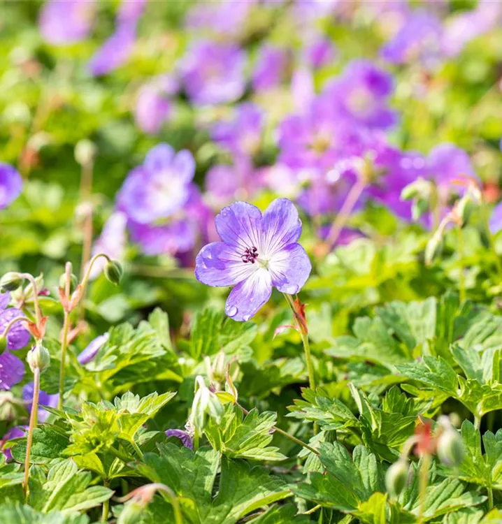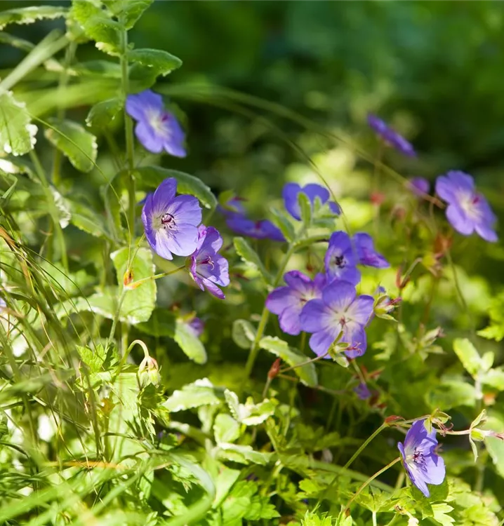 Geranium wallichianum 'Rozanne'® bildet blaue Blüten ab Juni.