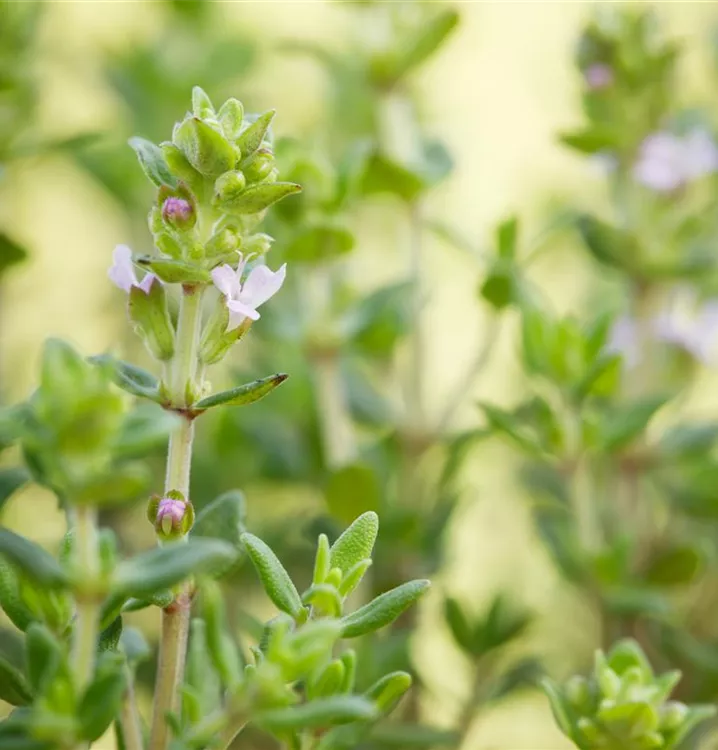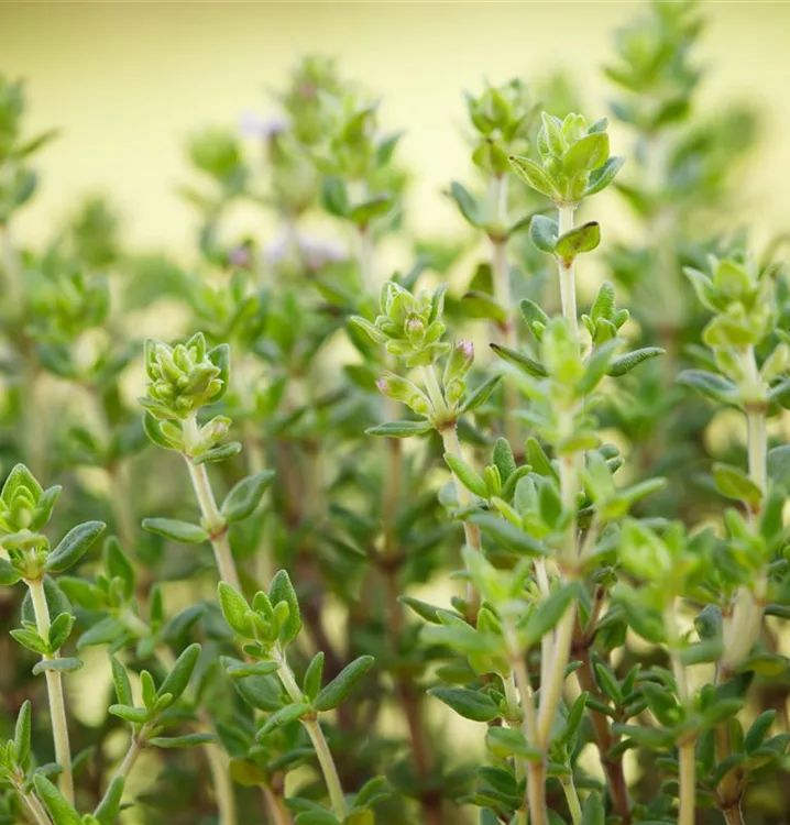 Der Kugelthymian 'Fredo' (Thymus vulgaris) ist eine Kräuterpflanze mit einem aromatischen, würzigen Geschmack. Für das optimale Wachstum des Kugelthymians 'Fredo' werden ein sonniger Standort und durchlässiger, nährstoffreicher Boden benötigt.