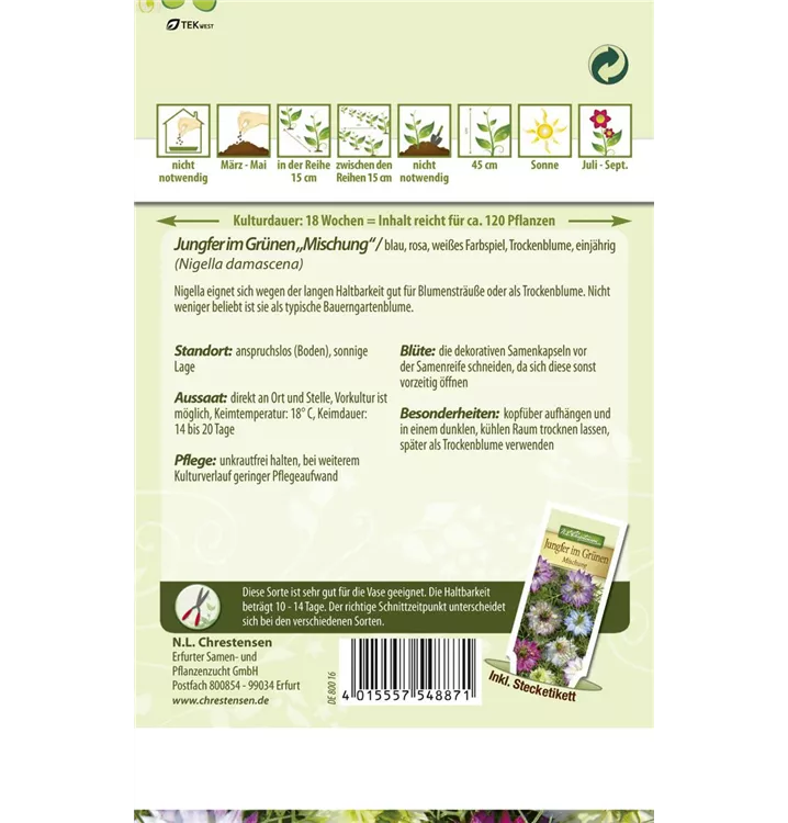 Die Jungfer im grüne ist als Schnittpflanze, aber auch als Bienenweide, zum Verzehr, im Bauerngarten, im Naturgarten oder im Rosengarten sehr beliebt.