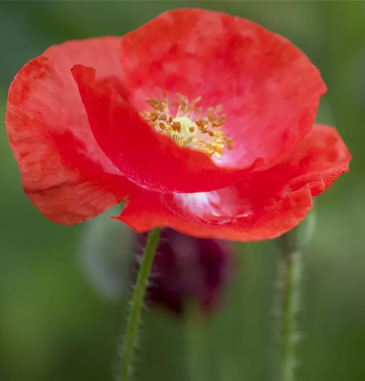 Papaver rhoeas, rot bildet schalenförmige, rote Blüten ab Mai.