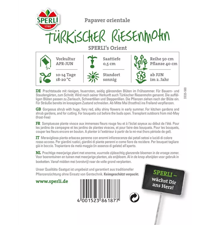 Der Türkische Riesenmohn 'Orient' weist eine gute Frosthärte auf.