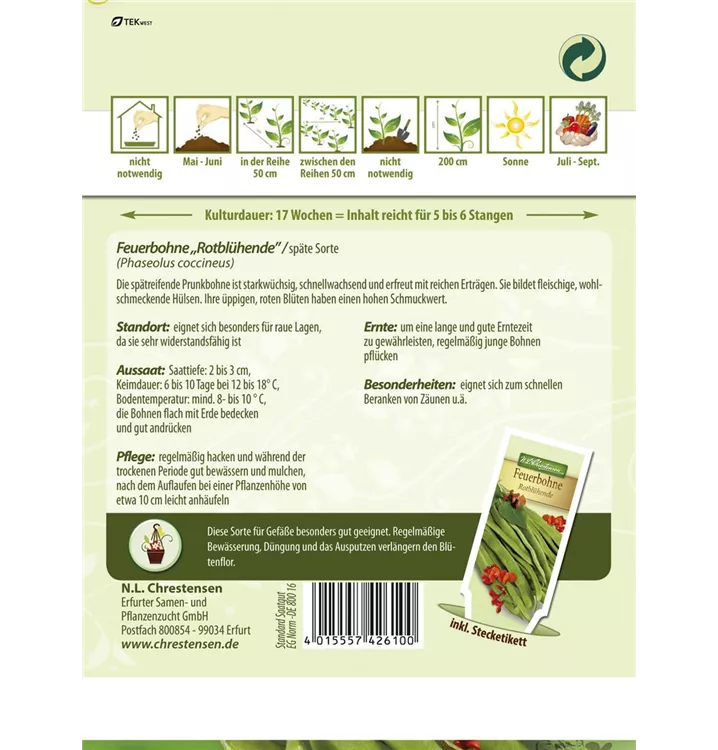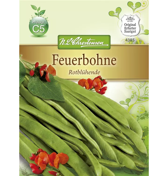 Die Prunkbohne 'Rotblühende' ist im Gemüsegarten, aber auch zum Verzehr, zum Kochen, für Salat oder für Suppen & Eintöpfe sehr beliebt.