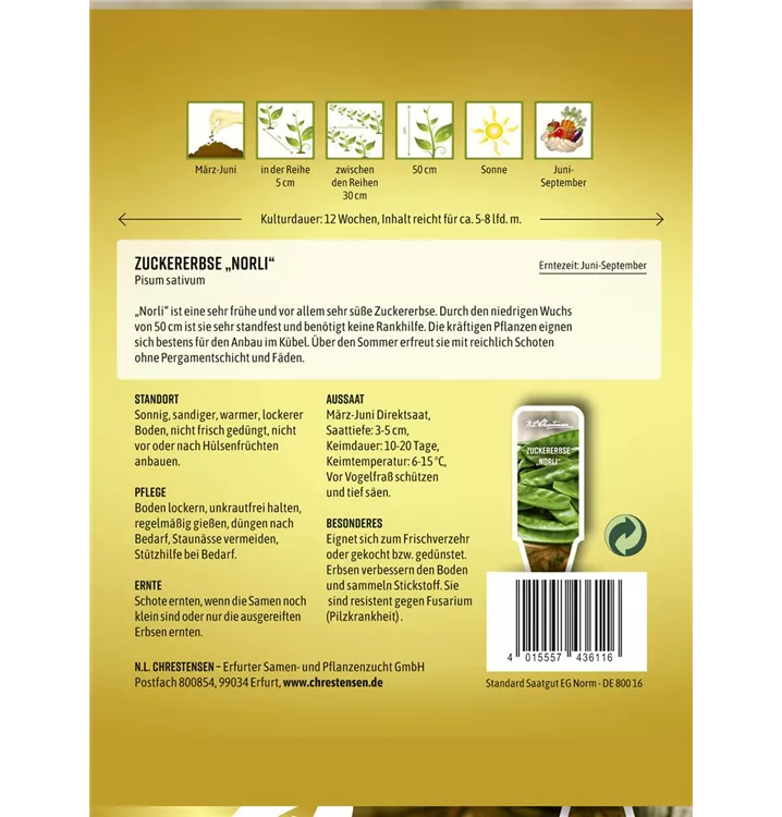 Die Kiefelerbse 'Norli' ist im Gemüsegarten, aber auch zum Kochen, für Salat oder für Suppen & Eintöpfe sehr beliebt.