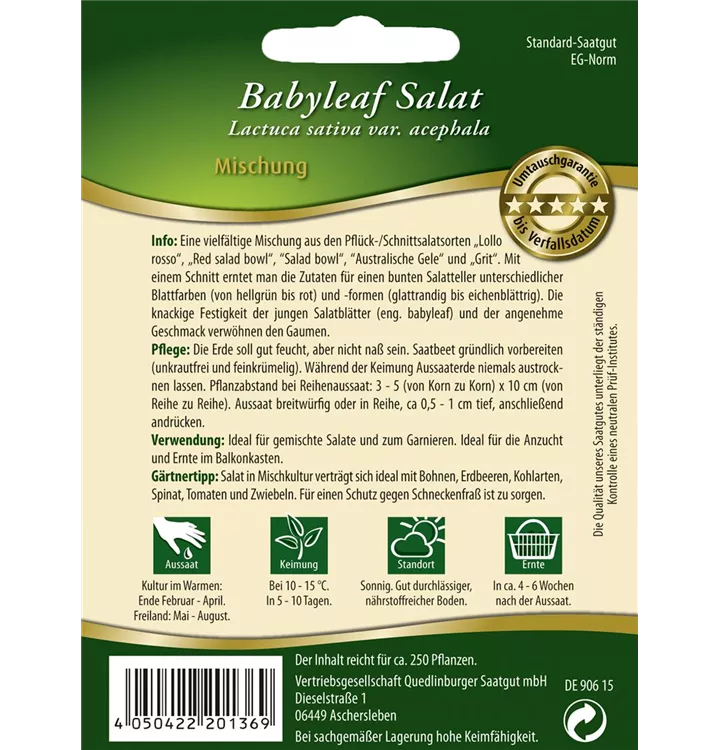 Der Babyleaf-Salat ist im Gemüsegarten, aber auch zum Frischverzehr, für Salat oder auf Balkon oder Terrasse sehr beliebt.