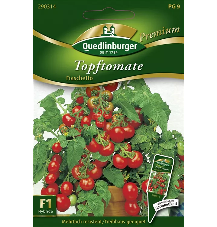 Die Tomate 'Fiaschetto F1' (Solanum lycopersicum) bildet Früchte, die aromatisch schmecken und bereits ab Juli geerntet werden können. Für das optimale Wachstum der Tomate 'Fiaschetto F1' werden ein sonniger Standort und durchlässiger, nährstoffreicher Boden benötigt.